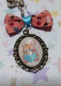 星柄リボンとレトロなアニマルイラストが可愛いカボションチャームのストラップです♪