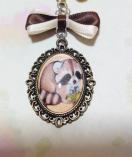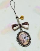 アニマルイラストとバイカラーリボンが可愛いカボションチャームのストラップです♪