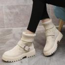 華奢な足首を強調するスリムなシルエットのソックス風厚底ニットショートブーツです