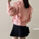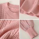 ランタンスリーブが旬のアクセントになる異素材mixのニットトップスです