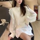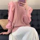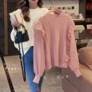 ニットウエア可愛い/体型カバーゆったり/異素材 ニットソー