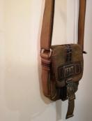 美品カーキ色革部本革ショルダーバッグ貴重品入れ斜め掛け頑丈素敵人気ブランド大活躍