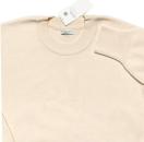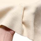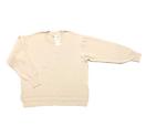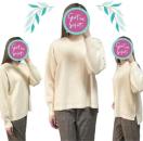 色はクリーム色のオフホワイト。後中心線にラインが入っている&裾袖襟がリブ、以外は平織で着まわし便利な無地のシンプルなニットセーターです♪。ゼヒいかがですか??
