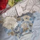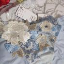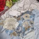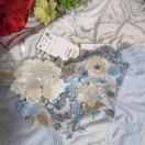 民族衣装をヒントにした1970年代のフォークロアファッション。その独特なカラーリングと懐かしい雰囲気を、サルートらしく昇華しました。多色使いのアップリケ、レースに刺繍を重ねた豪華さ。劇的に美しい店舗限定商品グループです。