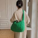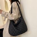 くったりと柔らかい綿入り、ナイロン素材を使用し、キルティング模様で落ち着いた雰囲気のショルダーバッグです