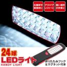 ≪ただ今送料無料中≫ これは便利です! メチャメチャ明るい!折りたたみ式フック&マグネット付24灯LEDライト1個の特価案内です。 暗い場所での作業に…!! アウトドア、クローゼットの中など色んな用途に使用できます。 裏面がマグネットとフックが付いているので場所や作業を選ばず使用可能♪ 24個のLEDが発光して、暗闇をしっかり照らします。 サイズ:本体…21x6x3cm ライト…9x4cm カラー:ブラックxレッド 連続使用時間:約20時間(時間は目安になります) 使用電池:単3電池 3本使用(別売) **発送方法はこちらで選ばせていただきます。 尚、発送方法を指定される場合は別途料金をいただければ対応させていただきますので、お問合わせください。締切日時