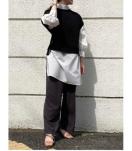 デザインベストは袖が少しあるので、インナーをノースリーブトップスとのレイヤードにした時も大人に着こなせます。ゆとりのあるサイジングですが、サイドのスリットと前後差のあるデザインなので着ぶくれせず程よい抜け感がありすっきり着こなせます。インナーのブラウスも袖のボリュームにこだわり、単品でも活躍できるのが嬉しいポイント。