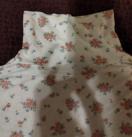 水色に赤系小花プリント