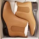 シンプルなデザインのサイドゴアだからこそ、ヴィンテージ調の程良いツヤ感の素材を使用し、すっきりとしたフォルムの洗練された大人の雰囲気に仕上げました。ベーシックなデザインは、マニッシュからフェミニンまで幅広いスタイルに合わせられ、脱ぎ履きがスムーズな形状も◎な万能アイテム。