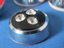 プラスチック製 クロームメッキ仕様 ポイント部分ブラックアウト仕様に3ポイントのスワロフスキーが埋め込んで有ります。裏面に両面テープ付属しています。 本体サイズ 直径26mm 厚み10mm 8個セット