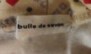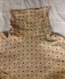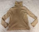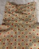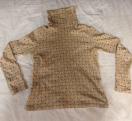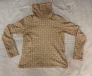 スキンベージュに赤や緑や水色の幾何学柄のハイネックカットソー厚手のしっかりした綿のハイネックで暖かいです。