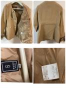 【3】特価美品ベージュノーカラーコート袖口ファー取り外し可タヌキウール首元スッキリ大活躍上品