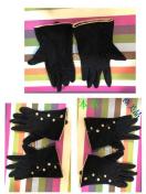 【4】特価★ブラック極美品本革花柄ブラックグローブ 手袋 レザーグローブ GLOVE黒お上品通勤普段用暖かい