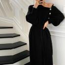 ワンピース 韓国/カットソー ワンピ/ロングニット 上品