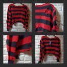 ダメージ加工のボーダーセーター。袖部分にもダメージがあり、かなりインパクトあります。オーバーサイズ。