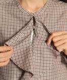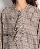変わりラッフルが胸元のポイントになった、チェック柄ブラウスになります。
