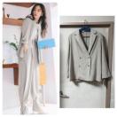 ダブルボタンのハンサムなルックスと、柔らかなカラーを組み合わせることで、