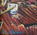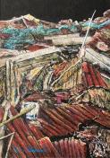 災害だからといって、バンクシーみたいに特にメッセージや思想等は全くありません。ぐっちゃぐちゃの様でいて自然に出来た構図や色彩なんかに惹かれて描いた次第です。災害シリーズは観る方によって感じ方は様々だと思います。「何て酷い絵だ!」「災害や戦争に遭った人の気持ちを考えろ!」とか言われたりしたこともありますが、私は映像や写真のように記録として描いている訳でなく、純粋に、「いいなぁ、この風景」と思って描いているだけです。ピカソのゲルニカみたいにナチス・ドイツによるスペイン空襲に抗議する、反戦的思想も其処には無く(尤もピカソが思想を持ち出して描いた絵画はゲルニカだけですが)、ある意味、静物画を描いているのと同じなのです。実際、阪神淡路大震災(オウム真理教追放に関わっていたので地下鉄サリン事件の為、全域は見られませんでしたが)、東日本大震災、それに伴う福島原発爆発等、日本だけでも沢山見てきました。日本以外の紛争地域や戦争の最前線にもよく行きました。だからといってそれらに伴う思想や宗教観や悲惨さとかを絵画に反映させるのかというと、現代社会に於いては違うんじゃないかと。昔は写真や映像が無かった時代やそれらが出来上がった時代でも、粗末な機器やフィルムであったから、一流の目を持った画家達が殆どの場合、それらの代わりとなり記録として描いたのでしょう。そりゃあ中には反戦とかの思想を込めて描いた方もいるでしょうが、現代それを行えば、それは良くも悪くもプロパガンタです。実際ピカソのゲルニカのレプリカがプロパガンタとなり政治利用され国連に飾られています。