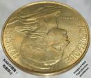 ・表面:フリギア帽をかぶり、風に向かっているマリアンヌの左側の横顔「REPUBLIQUE FRANÇAISE」という碑文に囲まれています。