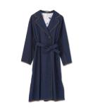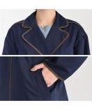 配色パイピングを効かせたトレンチコート。オリジナルプリントを背裏に使用しました。