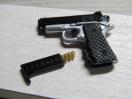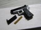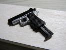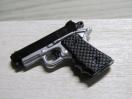 1/6スケール GIジョークールガール ACTION FIGURE用 玩具 COLT M1911改 デトニクス・コンバットマスター フレームSILVER 新品未使用!でございます。 1/6スケール GIジョー等フィギュア用アイテム玩具のルーズパーツでございます。 デトニクス社製のガバメントモデルで、小型ガバメントモデルの元祖でもある。しかし、ただ小型化しただけではなくいくつかの改良も加えられており、部品も本家コルト・ガバメントモデルとできる限り互換性を持たせてある。隠し持つのに丁度良い大きさであるため、アメリカの私服警察官などに使用された。ハンマーを素早く手で起こすために設けられた、スライド後端のスロープが特徴的。そのデザインから、日本ではコルト社製ガバメントモデルの短縮型と勘違いされ、「コルト・デトニクス」などと呼ばれることもあるが、コルト社製ではないのでこれは誤りである(コルト純正のそれは「ディフェンダー」と「オフィサーズ」 (実物の説明・仕様) ■サイズ■ 全長3cm程 スライド 多少可動 マガジン脱着可能 弾丸取り出し可能