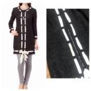 ヘムラインにリボンを通し、レディな表情に仕上げたロングジャケット。クラシックなノーカラーながら、ラメ入りの素材で華やぎを演出。プレーンなノーカラーに飽きてしまった人にオススメの1枚です。