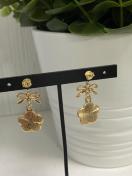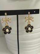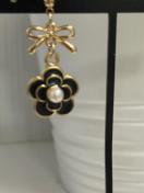 黒のカメリアチャームとリボンのつなぎチャームを使用したピアスになります。