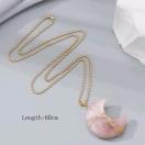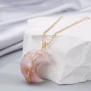大きめクレッセントムーンのローズクォーツの周りをツリー型にワイヤーを巻いたデザインが素敵です。チェーンも長め