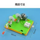 キット内容:組み立てマニュアル、組み立てキット(直角土台×2、パネル×1、モーター×1、圧着端子×1、シングルギア×2、メインギア×1、ソフトギア×1、輪止め×5、グリップ×2、4mmネジ×12、6mmネジ×8、10mmネジ×2、鉄軸×3、ハンドルロック×1、LED豆電球×1、U字クリップ×2、モータークリップ×1)