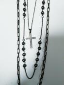 3連チェーンにラインストーン十字架、色もメタルブラックでかっこよすぎる珍しいデザインの素敵なネックレス(人´ з`*)♪