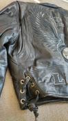 ☆柄などは 全て革皮縫い と 1ヶ所金属製(1cm程の盛り上がり) サイドは革ひもクロスでサイズ調整 オシャレです 普段着用からバイク乗車時などに かっこよく目を引きます。