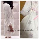 コード入りの上品フラワーモチーフが可愛いレースに、同系色のブーケを刺繍したオリジナル素材。ニュアンスにこだわってさりげなく刺繍が引き立つようにラメ糸を使い、地のレースもほんのり染めてあるデザイン。