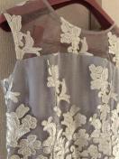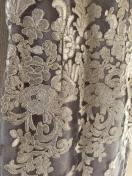 柄の入ったハリ感のあるチュール素材の上に、立体感のあるコード糸刺繍を施したタイトワンピース。グレー地にホワイトの糸刺繍を施した配色感もポイントです。ヨーク部分はチュールの透け感を出し、女性らしさをプラスしています。締切日時