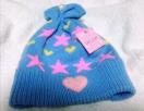 日本製 可愛いロゴのハート 星柄のニット帽子 タグ付