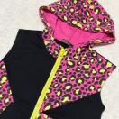 フロント身頃とフード,左側のポケットが濃ピンク×レモンイエローのレオパ柄の切替になっていてとっても可愛い(o^^o)