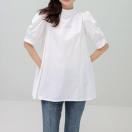 たっぷりとタックを入れたパフ袖は大人フェミニンと程よく肩の力が抜けたリラックス感、半袖より少し長めの5分袖の丈感によって気になる二の腕がさりげなくカバーされて嬉しいです