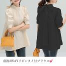 大人可愛いブラウス/入学式ブラウスママ/5分袖トップス女性