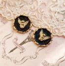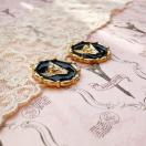 黒のエナメルで着色された上にエンゼルのレリーフがあるチャームです。