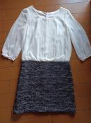 スカート部分は、黒白ツィード。ラメと、あちこちに、シルバースパンコールがあり、さりげなくキラキラ光り、めちゃくちゃ素敵です。
