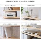 棚板は可動棚となっており、雑多な小物からプリンターなどの大きなものまで、入れるものに合わせて高さをお選び頂ける収納力にも優れた快適デスクとなっております。