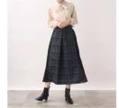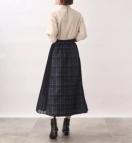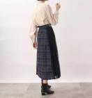 フロントがチェック素材、脇にシフォン素材のプリーツをドッキングした華やかなスカートです。
