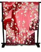 ・生地の真紅とピンクに映える枝垂れ桜が人目を惹き、