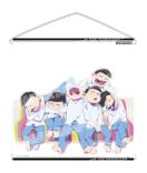 ソファーに集合した絵柄違いの6つ子が表面と裏面、2倍楽しめちゃうタペストリーです☆