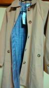 買ってすぐ出品しました。新品タグ付です。楽天やAmazonでも売られてました。ステンカラーのスプリングコートです。生地は楽天の記載だと綿麻、Amazonはポリエステルとありました。さらさらした質感です。タグを確認しましたが素材が書いてないようでした。