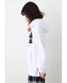 斜めに入ったロゴがインパクトのあるメンズライクなパーカー。ロゴにポケットが被っているのもポイント。ストリートスタイルにピッタリな一枚です。