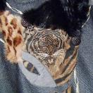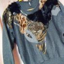3Dで虎が飛び出してくるような感じのセーターです。一部分はウサギの毛皮を使用しています。