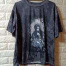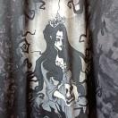 リンゴではなくスカルヘッドを抱きかかえた白雪姫風のプリンセスのイラスト入むら染め半袖Tです。