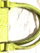 フランチェスコ ビアジアの牛革クロコ型押しハンドバッグ。マチはアコーディオンタイプなので荷物が少ない時には厚みが出ずにスッキリ見えます。荷物を入れない場合ではマチの膨らみはほとんどありません。基本、荷物は携帯等の薄い物にし、ぺったんこでオシャレなバッグです。USEDになり、後ろ面にあたる持ち手に汚れがございます。自宅保管で期間が経ちますので、革製品ということもあり細かな傷はあるかと思います。ご理解下さい。(持ち手汚れ個所は、画像5・画像6でご確認をお願い致します。画像4でも持ち手汚れの雰囲気が確認頂けるかと思います。)
