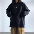 長袖 スウェット ファクション シャツ ロング 2XL レディース トップス、ブラウス、ブラック、サイズ:2XL