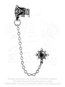 Alchemy Gothic の Chaosium カフ スタッド イヤリングは、シルバー チェーンでスタッドに結合された、精巧なシルバー ピューター イヤー カフです。イヤリングには、プラスチック製の蝶が付いたスターリングシルバーのポストがあり、上質な英国のピューターで作られています。